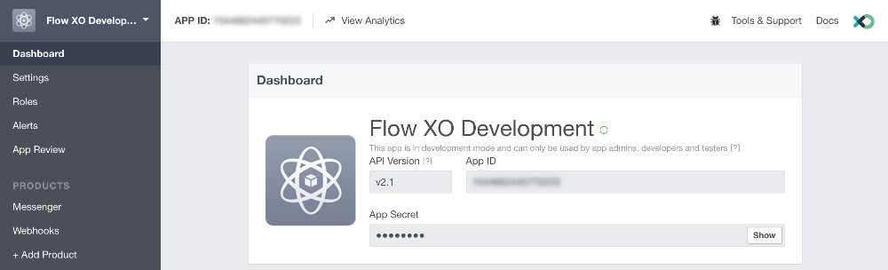 - Next you'll need to copy and paste in your Facebook App ID & Facebook App Secret. Sign in to Facebook Developers to get these. Go to the dashboard of your app and you'll see the ID and secret: