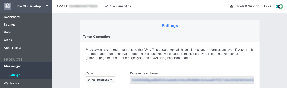 - Copy the token that is generated into the Facebook Page Access Token field in Flow XO.